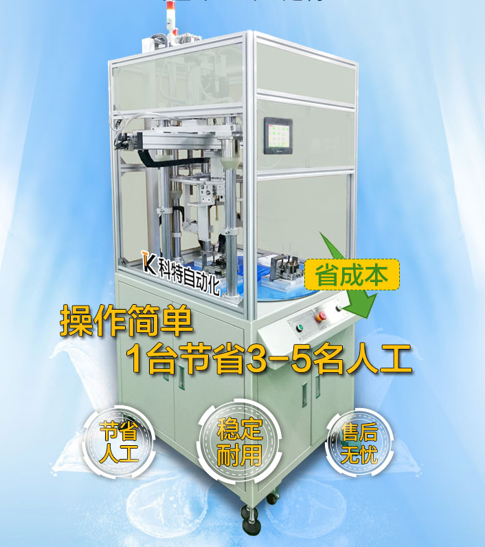 最后是鎖付機(jī)構(gòu),鎖付機(jī)構(gòu)主要由電動螺絲刀、刀 頭、伸縮機(jī)構(gòu)、夾咀或套筒組成,將螺絲供料器送過來的螺絲對準(zhǔn)螺絲鎖付孔位,控制電動螺絲刀下壓,電動螺絲刀有下壓啟動功能,螺絲接觸到螺絲孔自動啟動電批,達(dá)到鎖付扭力后,自動停止,完成螺絲的鎖付。